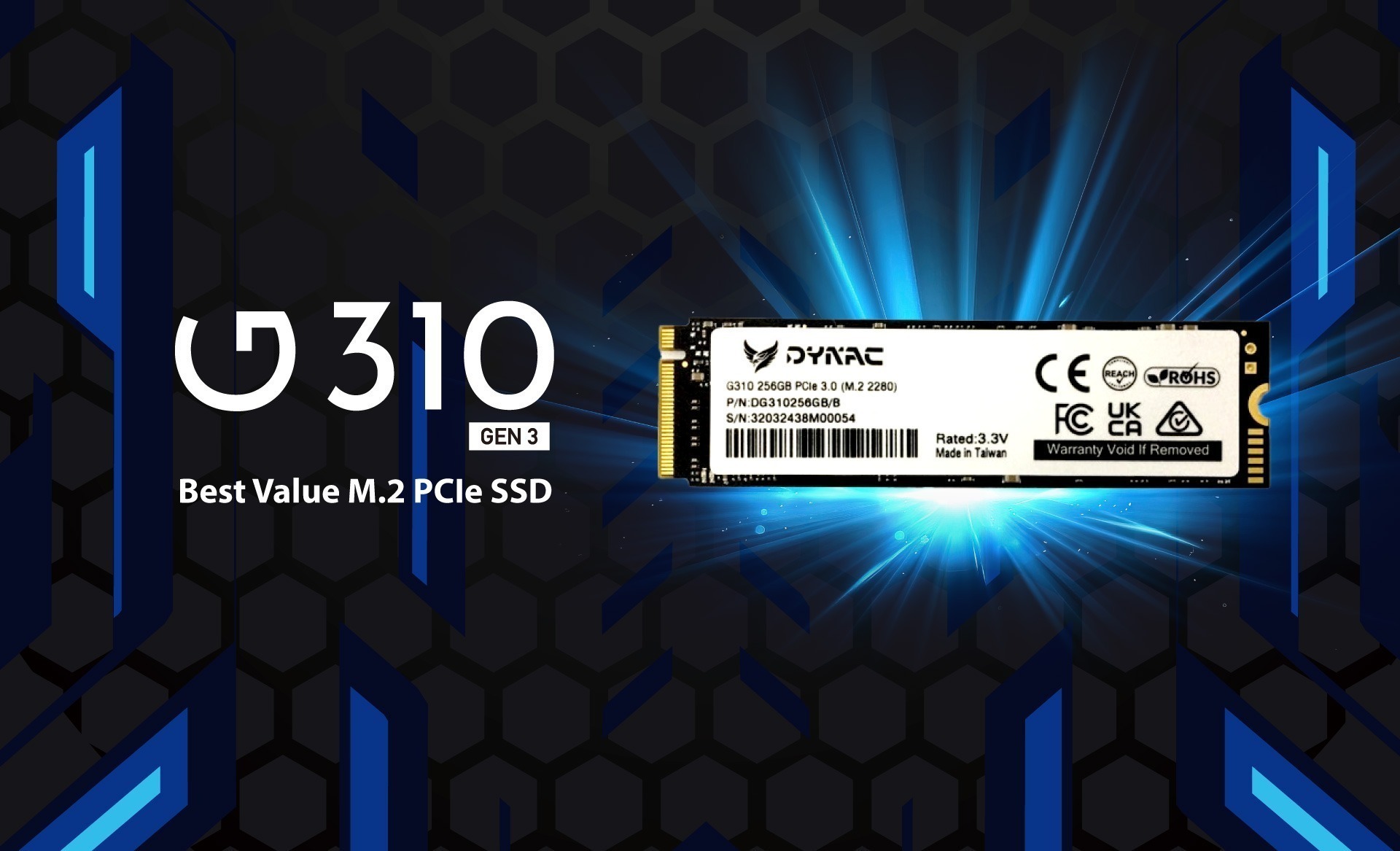 Dynac G310 M.2 PCIe SSD 採用Gen3x4介面